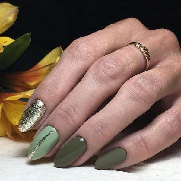 У этого есть несколько разных дизайнов в разных цветах. Этот маникюр представляет собой смесь множества модных идей, которые были представлены в статье. Он имеет глиттер, бордо, мраморность, хаки и золото. Если вы хотите маникюр, который вызовет зависть у всех, тогда вам подойдет такой дизайн. Если вы создаете его дома самостоятельно, это потребует практики и терпения, но результат того стоит.