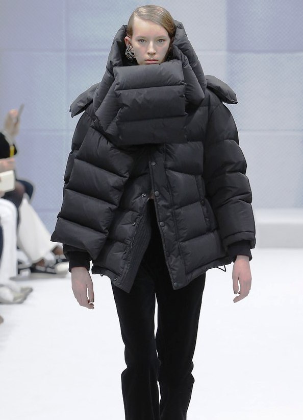 - Oversized-пуховики с высокими воротниками