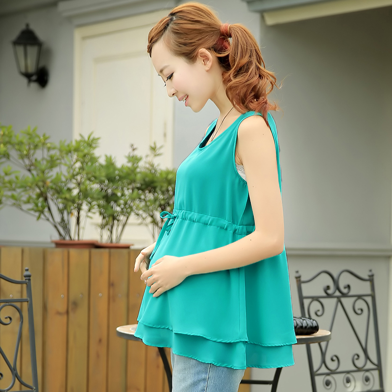 - Блузки и летние платья-сарафаны изначально предлагаются в фасонах широкого кроя. Следует учитывать быстрый рост в талии и брать одежду с припуском;