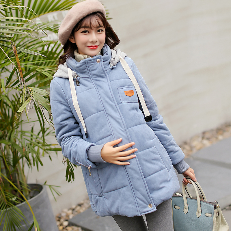- При покупке верхней одежды лучше выбрать куртку или пальто с запахом или трапециевидной формы. Хорошо, если модель пуховика будет включать дополнительную вставку на животе для последних сроков.