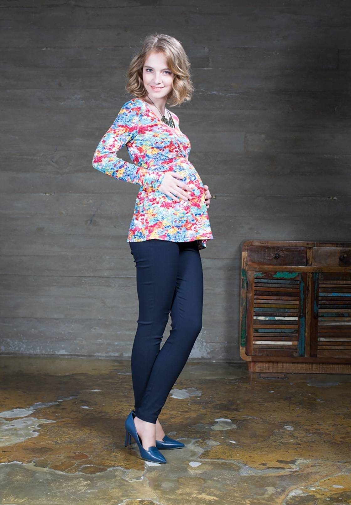 Выбирая верх для базового гардероба беременной, делайте выбор в пользу мягких струящихся тканей. И вообще идеально, если внизу такой кофточки будет резинка. Такие вещи вы сможете еще долго носить после родов — во время кормления грудью. Они будут лучше скрывать еще не убравшийся животик и красиво смотреться, как вовсе не-беременная вещь.