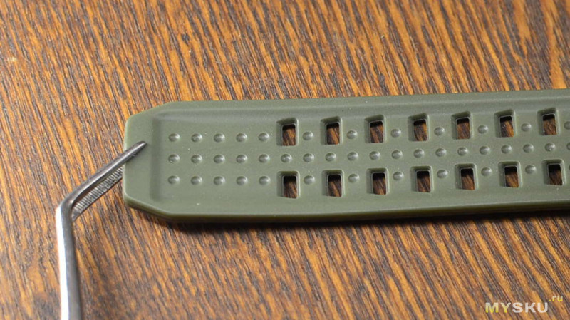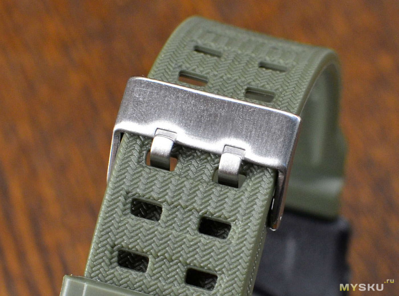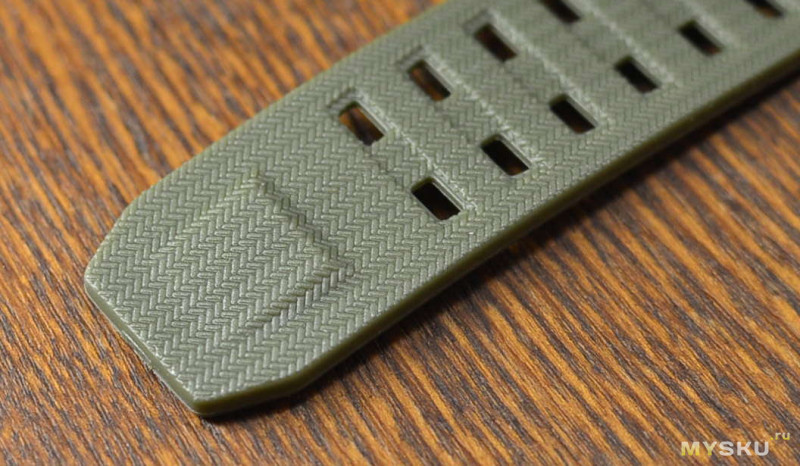 Сам ремешок — армейского зелёного цвета, недочётов не обнаружил, выполнено в целом аккуратно