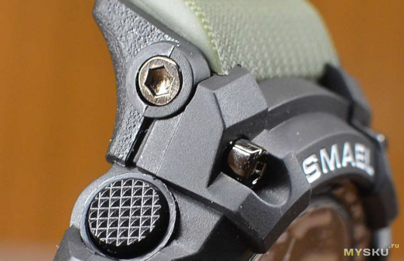 Если присмотреться поближе в боковой части, то можно заметить на часах Smael шлейфик облоя