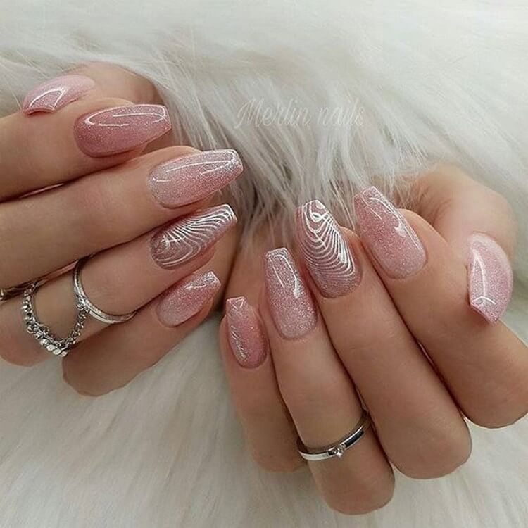 Новой идеей создания красивого французского маникюра 2020 можно считать дизайн ногтей с блестящей акриловой пудрой. Придайте ногтям красивый блеск. Пудру можно рассыпать по всей поверхности ногтя или просто по рисунку. В обоих случаях дизайн получается очень элегантным и увлекательным.