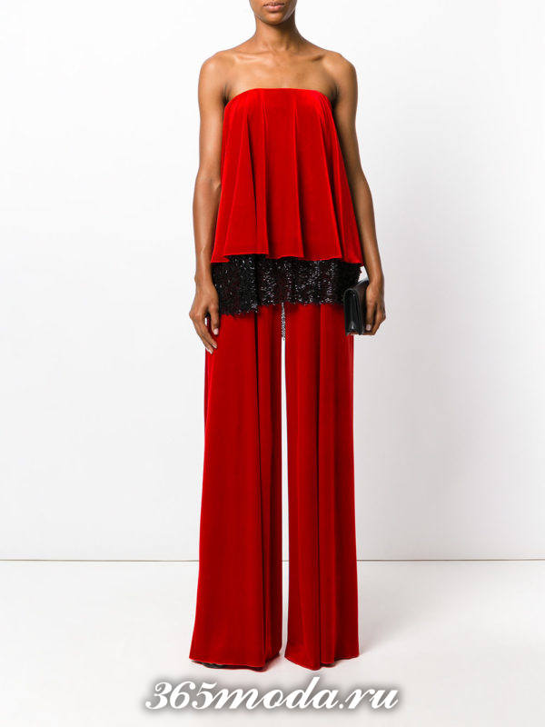 В моду вернулись брюки-клёш, поэтому такой вариант станет необычным и интересным. Костюм с кюлотами и пиджаком в стиле авангард подойдет женщинам, любящим удивлять и быть в центре внимания. Облачаться в строгий костюм делового стиля, сочетая его с белой рубашкой, не стоит: корпоратив все же предполагает праздник и веселье.