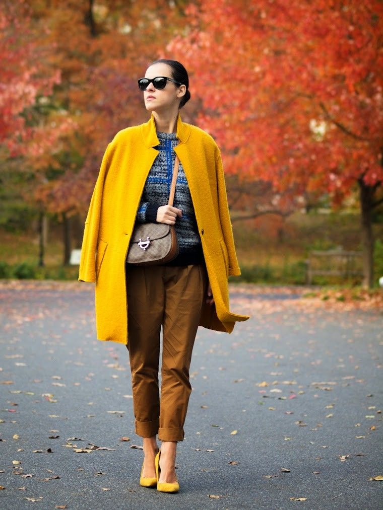 Фото: lateafternoonblog.com Обязательным атрибутом осенней погоды является яркое пальто, которое можно носить как вверх, так и вниз.Чтобы создать эффект преппи, наденьте его с узкими джинсами, черным свитером и туфлями на каблуке.