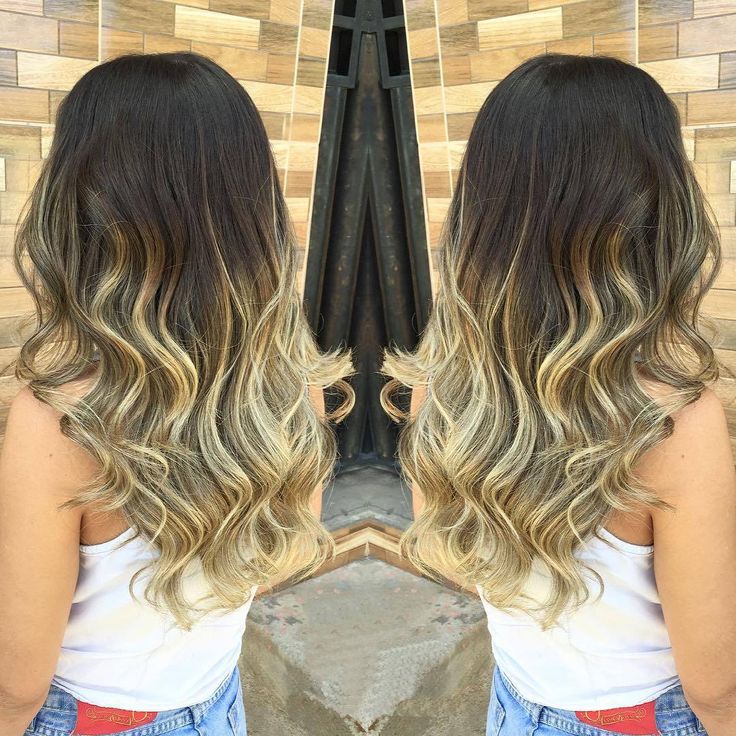 Далее вы можете ознакомиться с фото до и после покраски в технике омбре на длинных черных волосах: