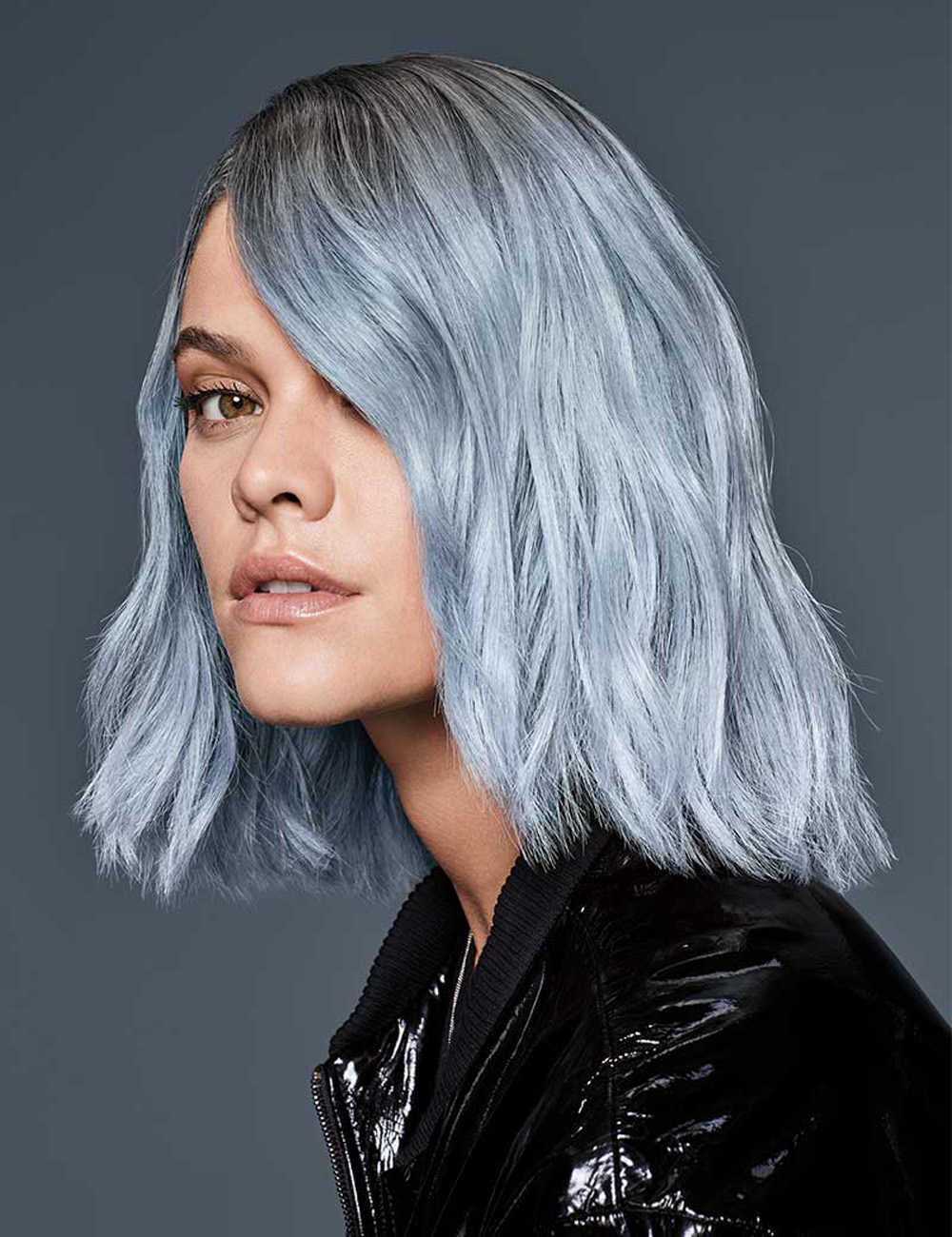 В качестве ярких цветов используют фиолетовые, синие, ярко-красные и даже желтые, но при этом они могут перекликаться как с родным цветом волос, так и с близкой оттеночной палитрой.