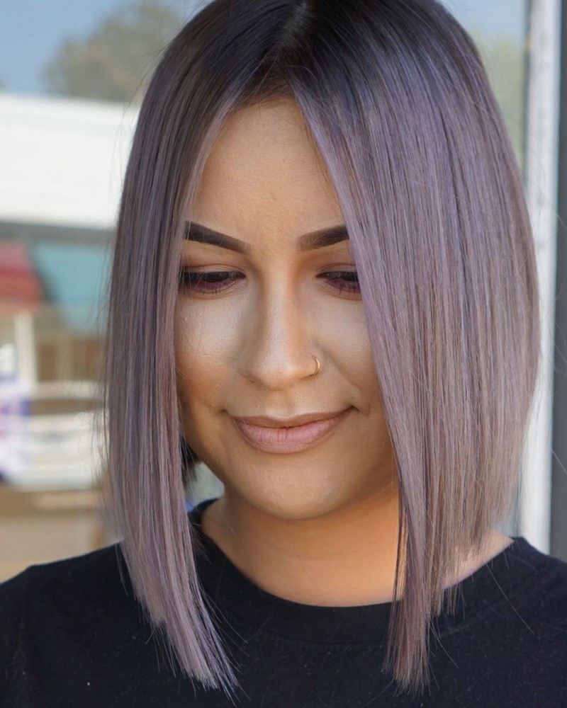 В 2019-2020 году особой популярностью пользуется пепельное окрашивание волос, которое своим стильным подходом покорило огромное количество девушек. Попробуй обмре на каре в светлых и темных серых оттенках, результат получится эффектным!