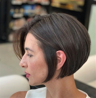 Она может быть выполнена с ровным срезом или же с короткой задней частью и удлинёнными передними локонами.