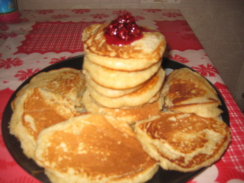 Аппетитно. Мама пекла оладьи, делала на дрожжах, вкусные были. Я не запомнила рецепт, к сожалению.