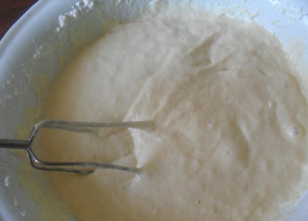 Муку предварительно просейте, добавьте в тесто, продолжив процесс взбивания.