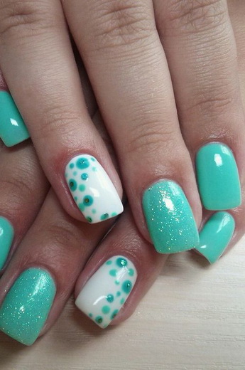 Такая смесь темно-зеленого, коричневого и серого оттенков отлично подойдет, как для повседневного, так и вечернего маникюра. Для второго варианта стилисты рекомендуют использовать яркие декоративные элементы в виде блесток, перламутра и страз, чтобы придать дизайну праздничности.