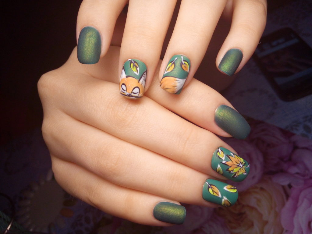 Оригинальные идеи матового маникюра с лисой: фото, примеры