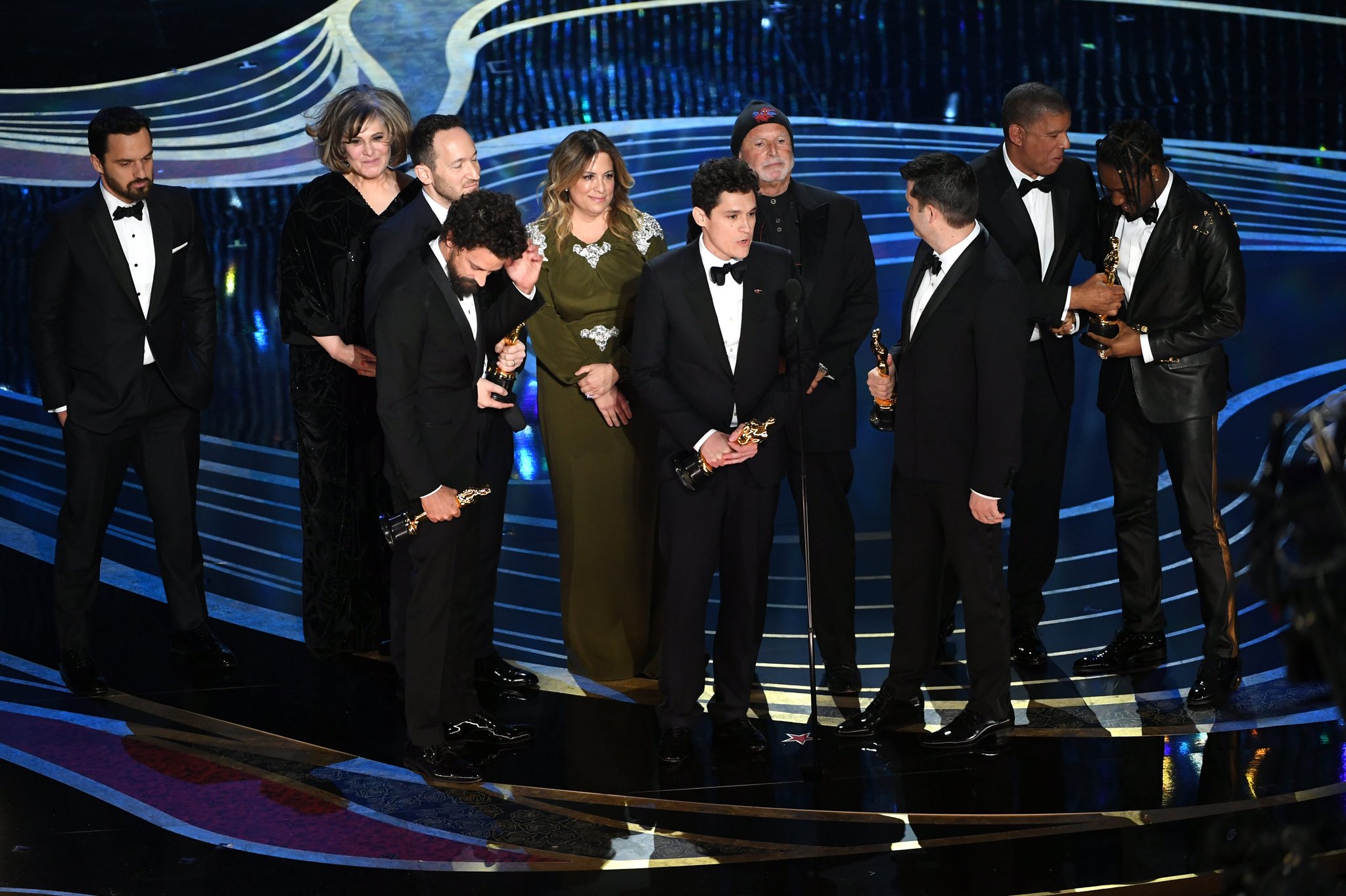 Питер Фарелли (в центре), Ник Валлелонга (справа) и Брайан Хэйес Карри получили награду за «Зеленую книгу». С идеей фильма о невыдуманной дружбе в пору расовой нетерпимости когда-то пришел к продюсерам Ник Валлелонга — сын Тони Валлелонги, главного героя картины, сыгранного Вигго Мортенсеном