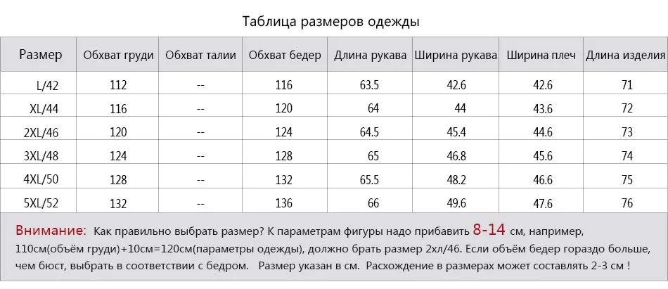 | Российский размер | 42 | 44 | 46 | 48 | 50 | 42-50 |