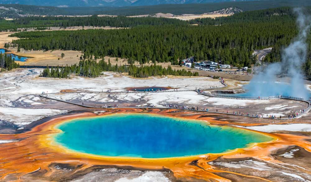 1. Йеллоустоун Национальный парк | 1 марта 1872 г. Расположенный между тремя штатами — Вайоминг, Айдахо и Монтана — Йеллоустонский национальный парк является первым национальным парком в США.