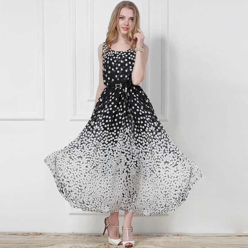 Более демократичные варианты предполагают использование принтованной ткани, многослойных юбок. Если лиф достаточно лаконичен, а линия талия акцентирована поясом, создаётся очень нежный и скромный образ. В жаркие летние дни находкой станут яркие лёгкие, летящие длинные сарафаны с бретелями разной конфигурации, которые выглядят и являются действительно невесомыми и в то же время создают радостное праздничное настроение.
