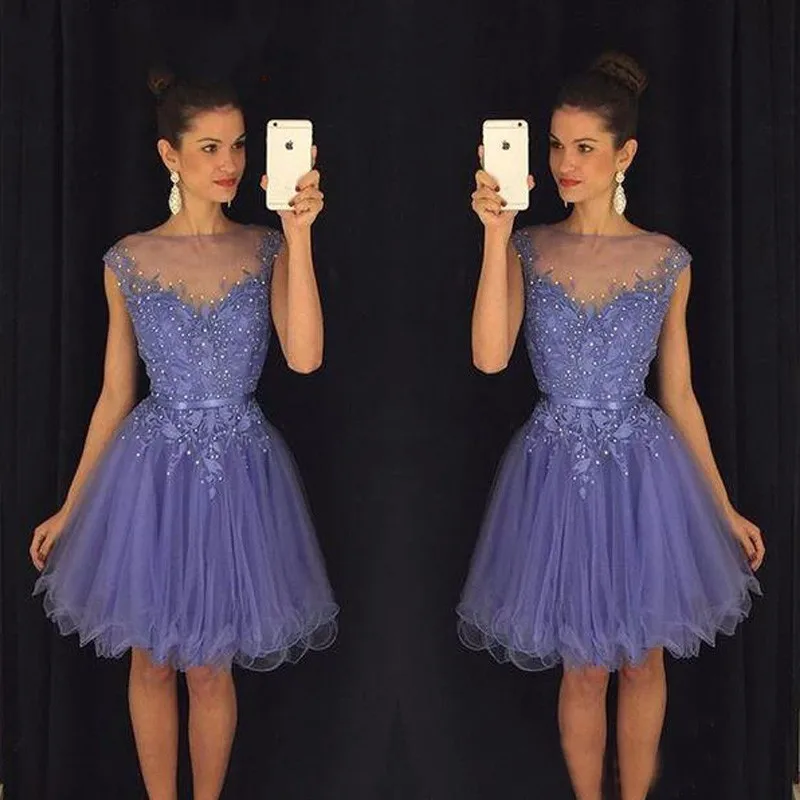 Лавандовое платье для встречи выпускников длиной до колен из тюля и кружева
