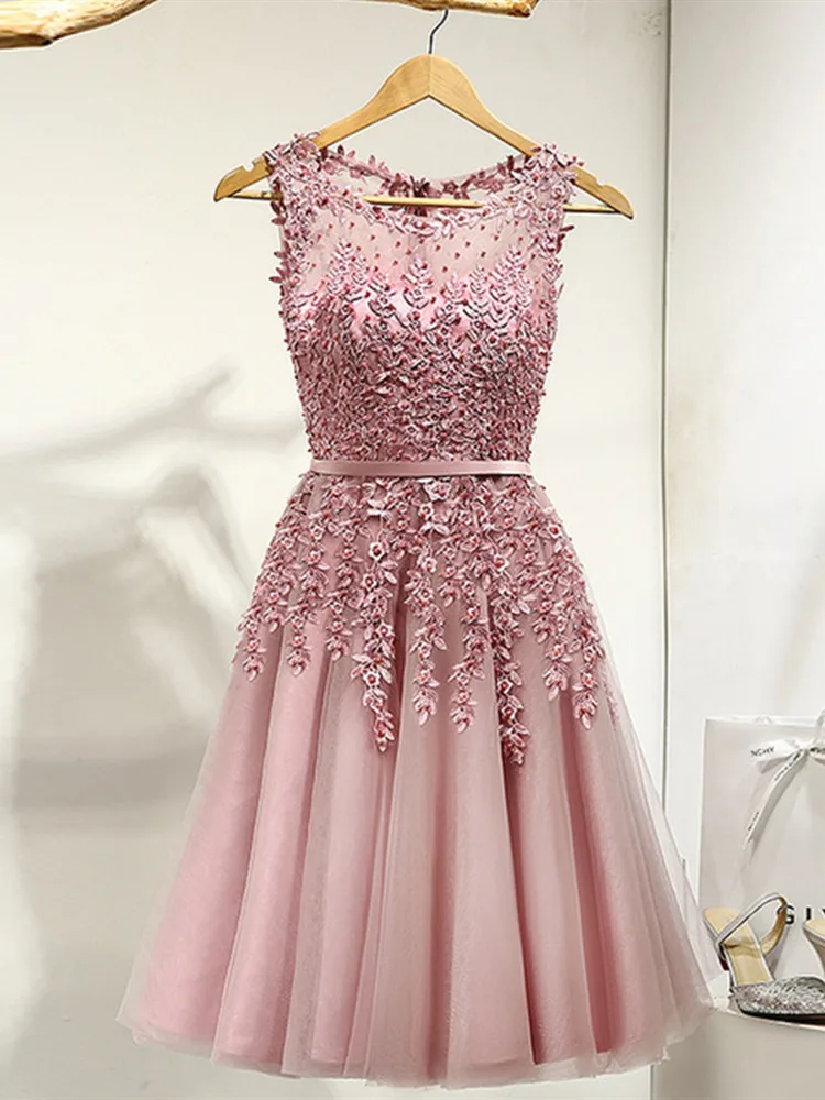 Мягкое розовое кружевное короткое платье для подружки невесты