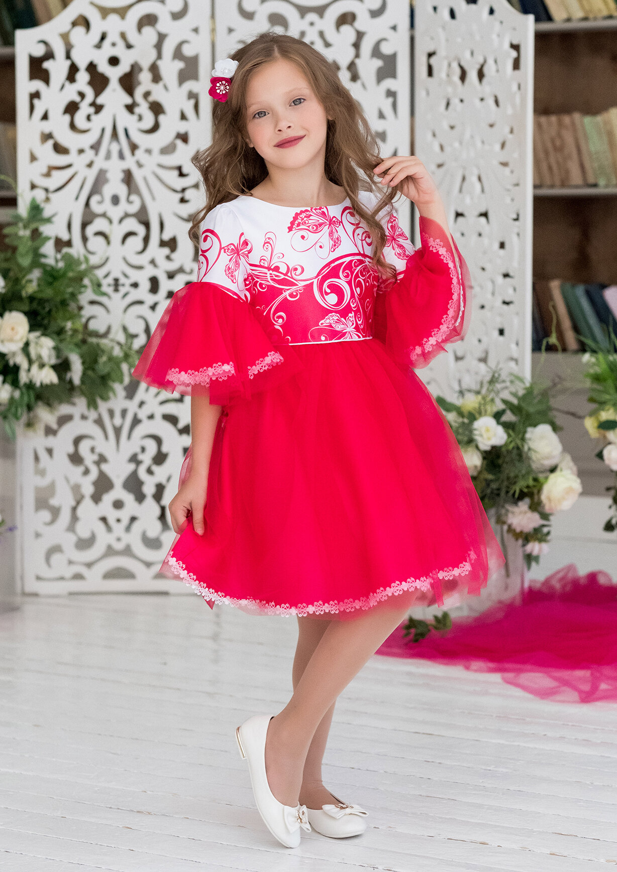 Но для бальных танцев либо соревнований такой наряд вполне возможен, если пошит на заказ. Правда, чаще всего ребенка одевают в пастельные оттенки. Однако яркий элемент пламенного тона выглядит уместно на нежном фоне. А вот приобретать красное платье для девочки без повода – вариант не лучший.