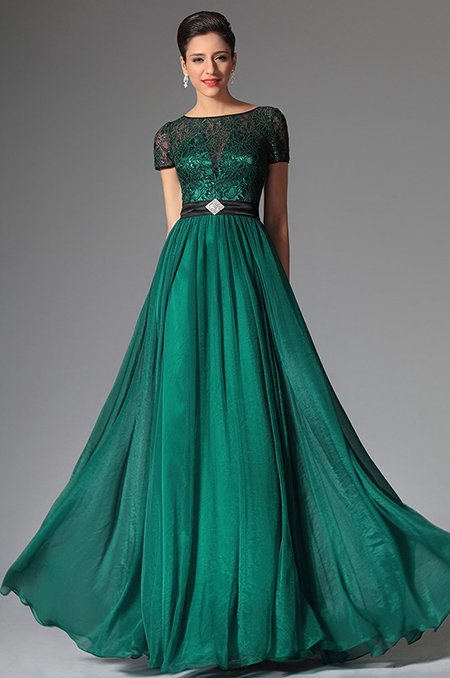 Выпускной вечер — также прекрасный повод нарядить в зеленый цвет. Оттенок является компромиссом между желанием девушки выглядеть шикарно и юной красотой. Не темное и не светлое, изумрудное платье хорошо подходит всем возрастам.