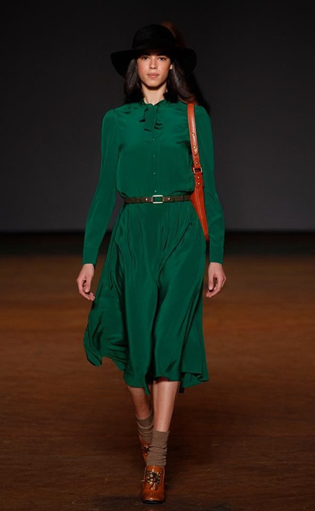 Elie Saab предлагает образ в стиле total look – зелёное платье, зелёный шарфик, колготки и сапоги. Всё одного цвета. Хороший вариант, если зелень к лицу!