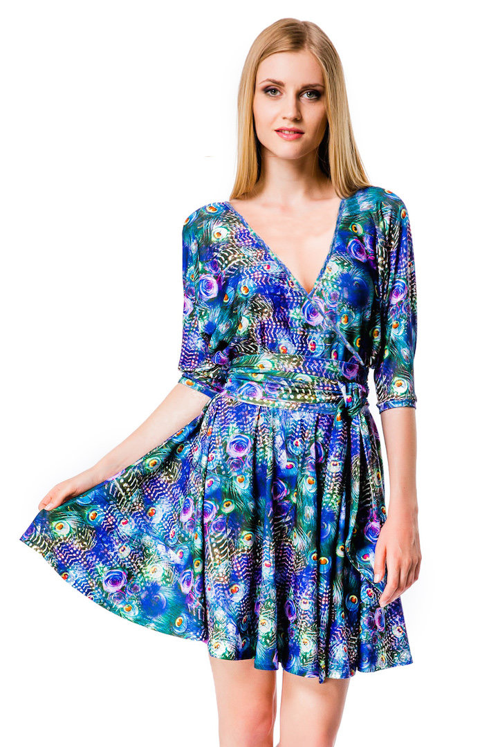 - подбирайте коротенькие платья с небольшим спущенным рукавом и расклешенной юбкой;
