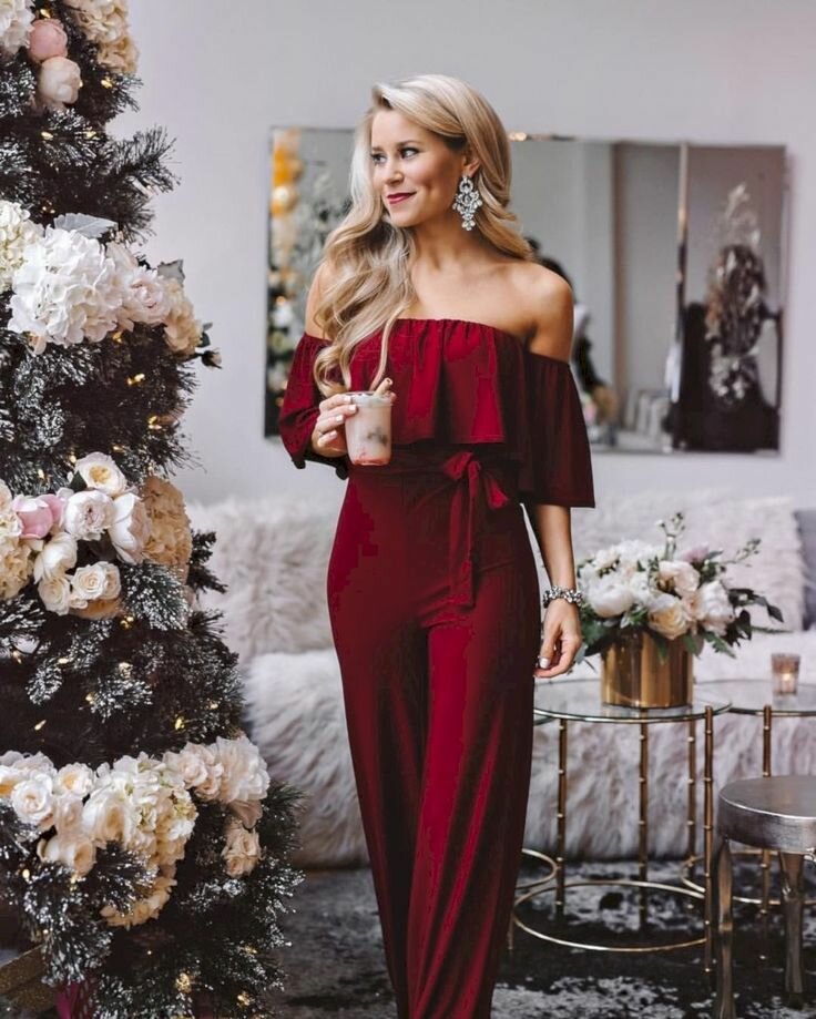 новые цветы и цветы. Eine Frau in Einem Cocktailkleid in der nähe des weihnachtsbaums. — рождественское платье фото и фотографии Frohes neues Jahr und frohe Weihnachten. Eine Frau in einem.