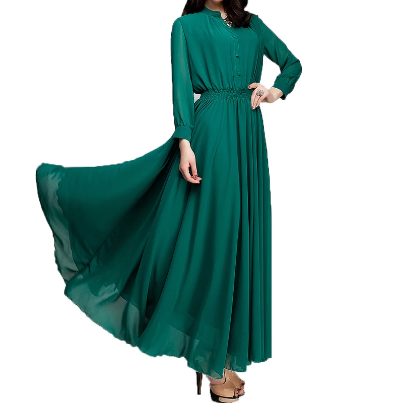 Платье женское шифоновое длинное вечернее макси в пол мусульманская одежда с длинными рукавами SABR