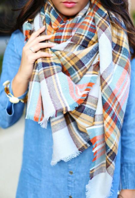 Нам нравится богатый и смелый вид клетчатых шарфов нейтральных оттенков верблюжьего или более насыщенных оттенков красного. Добавьте в свой гардероб один или три клетчатых шарфа этой осенью, и вскоре они станут вашим любимым универсальным аксессуаром!