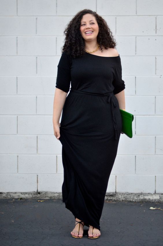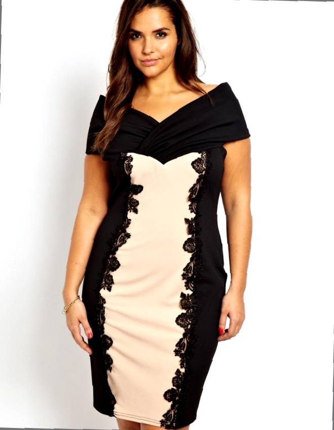 Универсальное решение – маленькое черное платье. Да-да, красотки plus size тоже могут себе позволить выглядеть элегантно на торжестве. Хорошим дополнением к темному приталенному платью станет кружевная накидка или тонкий длинный кардиган. Подкорректировать недостатки фигуры позволяют вечерние платья бюстье и годе с богатым многослойным подолом-рыбкой. Отвлекут внимание от недостатков приспущенные плечи, интересные брошки, декольте и выделенная талия.