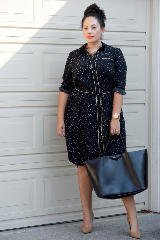 Дамам plus size дизайнеры предлагают стильные платья-рубашки миди или макси длины. Они отлично впишутся в городской и кэжуал стиль, а тонкий элегантный поясок на талии добавит некоторую изюминку. Главное – не переусердствовать с перетяжками, иначе все лишние сантиметры окажутся на виду.