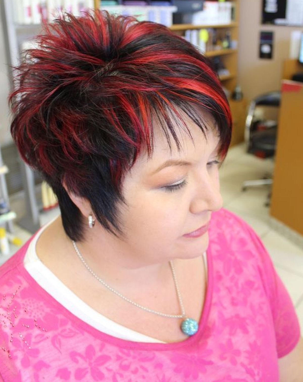 «Вам не нравится яркость и глубина, которые дает добавление красного оттенка к уже существовавшим черным волосам? Чтобы сделать ваши короткие темно-красные волосы яркими, выберите укороченные слои, чтобы добавить движения и текстуры », — добавляет она.