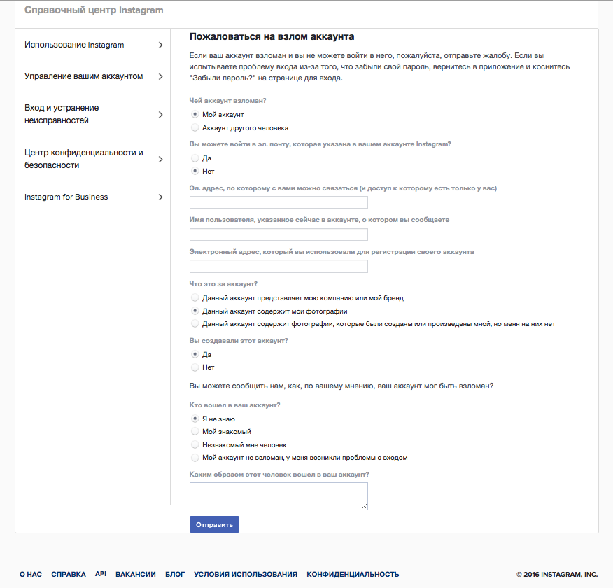Как пожаловаться на взлом страницы в Инстаграме