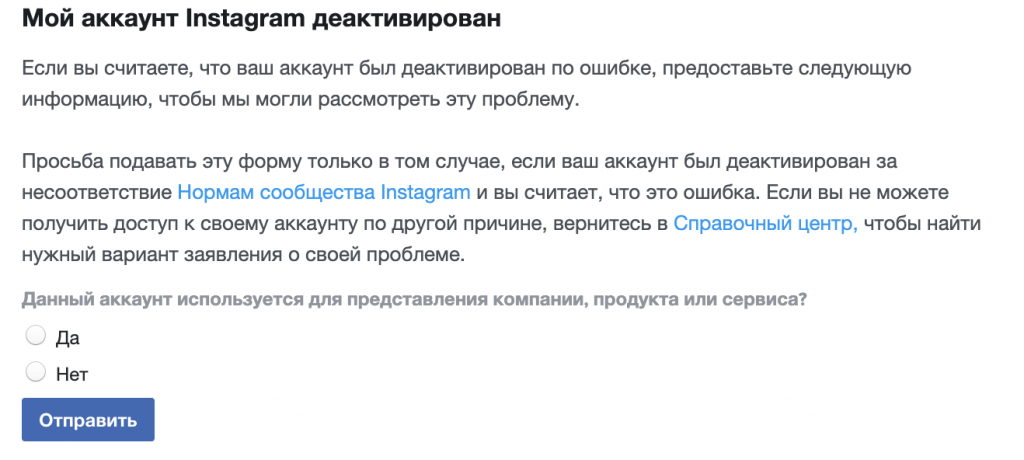 Если Instagram ограничил доступ к функциям или заблокировал профиль, можно обратиться в техподдержку с просьбой разъяснить причины. Возможно, вам ответят, и если причина надуманная, вы сможете ее оспорить.