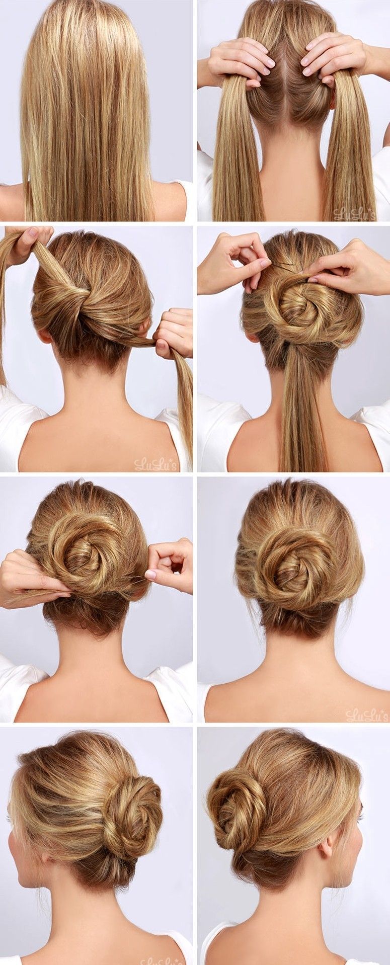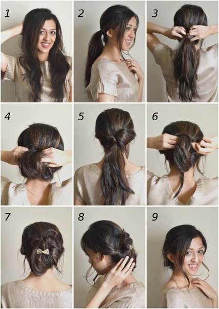 Прямые пряди должны быть собраны под узлом, а прическа выглядеть ровной и гладкой. Сделать такую прическу легко.