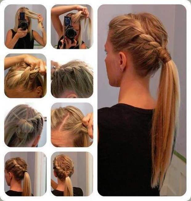 Шаг 1: Возьмите прядь волос и заплетите ее от линии роста волос до конца. Шаг 2: Соберите оставшиеся волосы вместе с косой и соберите их в хвост, закрепив резинкой.