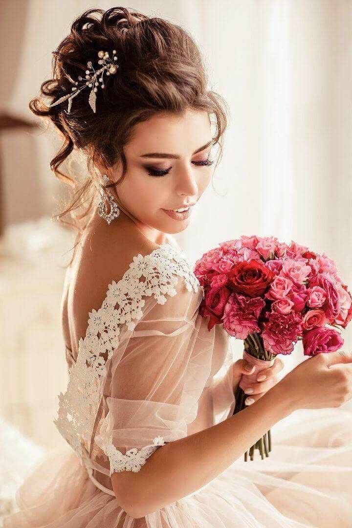 шикарная свадебная прическа с объемной выпуклостью и завитками сделает вас идеальной в течение всего дня