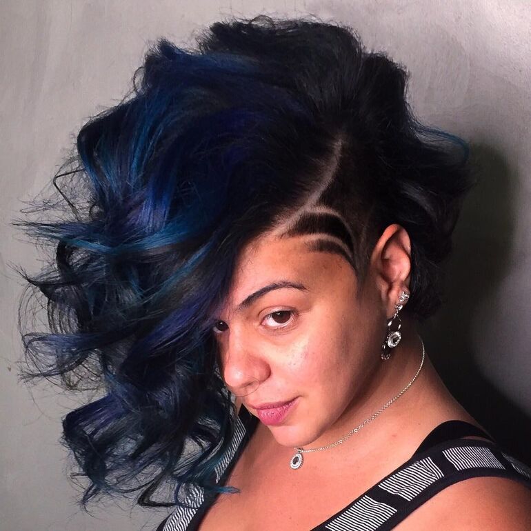 6. Натуральные волосы + стрижка Undercut с дизайном