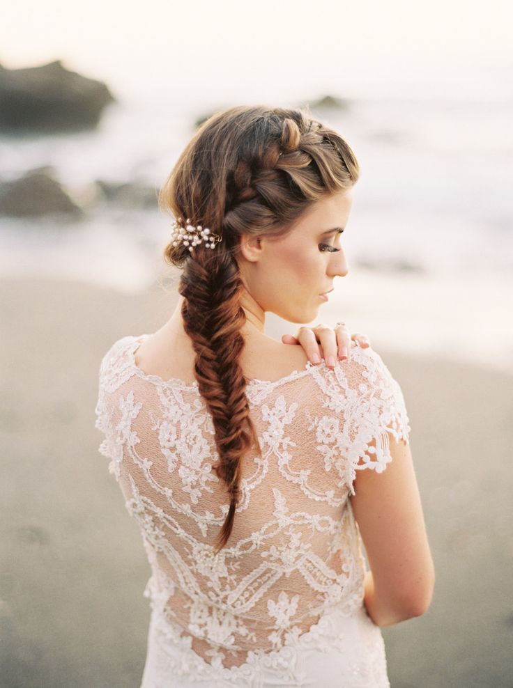 Насколько симпатична эта свободная коса «рыбий хвост»? Эта свадебная коса в сочетании с заколкой для волос или элегантной лентой станет идеальным свадебным нарядом.