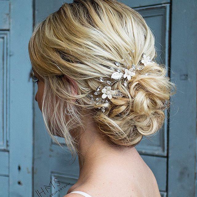 Даже такая простая прическа, как низкий пучок, нуждается в элегантности в день свадьбы. Можно попробовать разные прически. от высокого конского хвоста до полуприподнятого, полуопущенного.