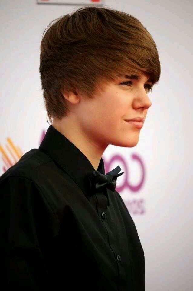 Первый раз, когда Джастин Бибер вышел на сцену он имел прическу удлиненный боб, при которой у него наблюдался очень объемный затылок, удлиненные локоны вдоль лица и удлиненная косая челка.