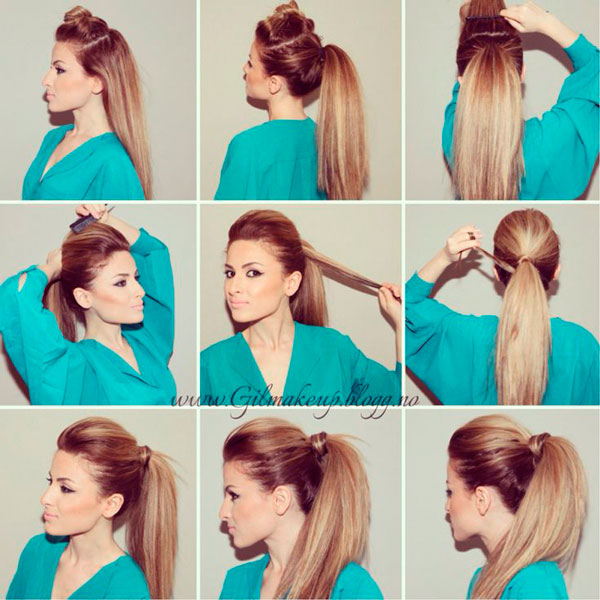 Затем их собирают в хвост на макушке, наклонив голову вниз.