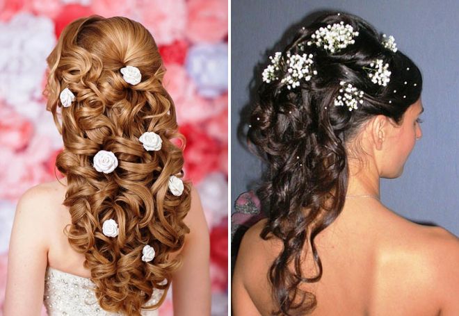 - россыпь мелких цветочков обыкновенно размещается на фате. Между тем, некоторые девушки украшают свою прическу таким образом при помощи большого количества маленьких заколок или шпилек с наконечником в виде цветка;