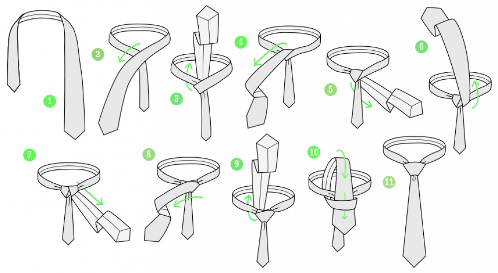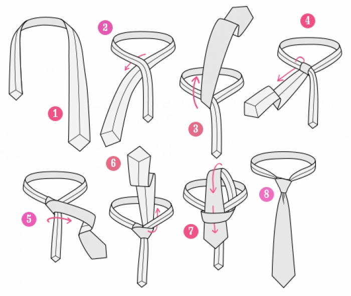 Итак, мужчины, смотрим на схему и завязываем галстук простым узлом: