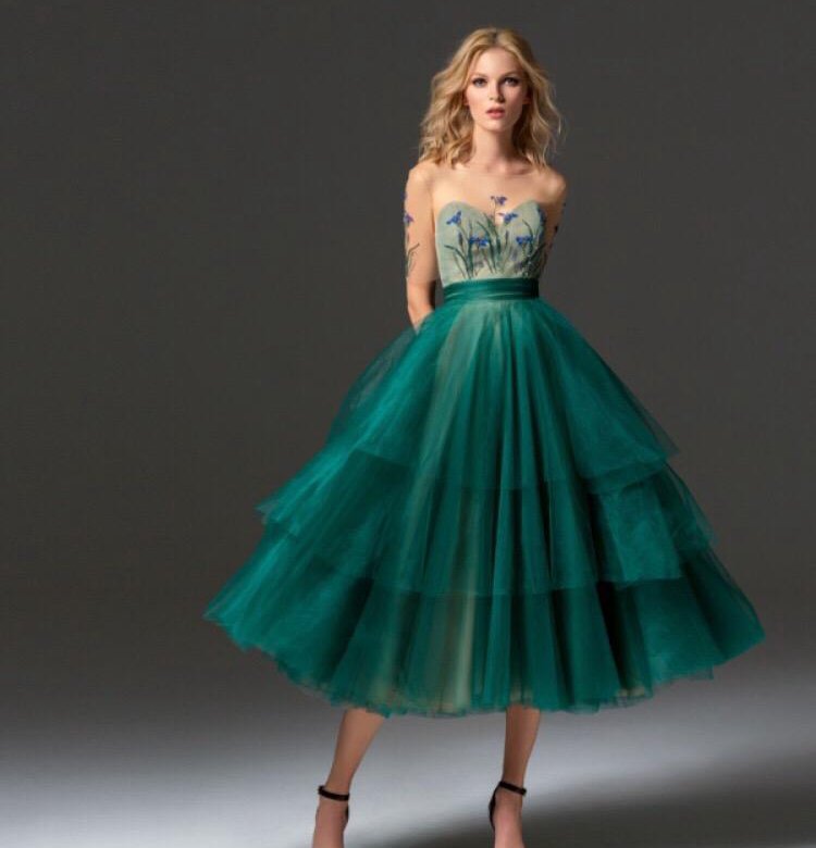 Вечерние платья привлекают внимание благородством цветовой гаммы, эксклюзивными, дорогими материалами, лаконичными и утонченными силуэтами. Большая часть таких моделей имеют длину миди, которая является отголоском моды 60-х годов прошлого столетия. - Каскадное. Комбинирование нескольких уровней ткани, мягко обволакивающей фигуру и подчеркивающей каждый изгиб. Чаще всего каскадность предполагает укороченную спереди и удлиненную сзади нижнюю часть. Подол украшается оригинальной вышивкой или необычными вставками из кружева или металлических нитей.