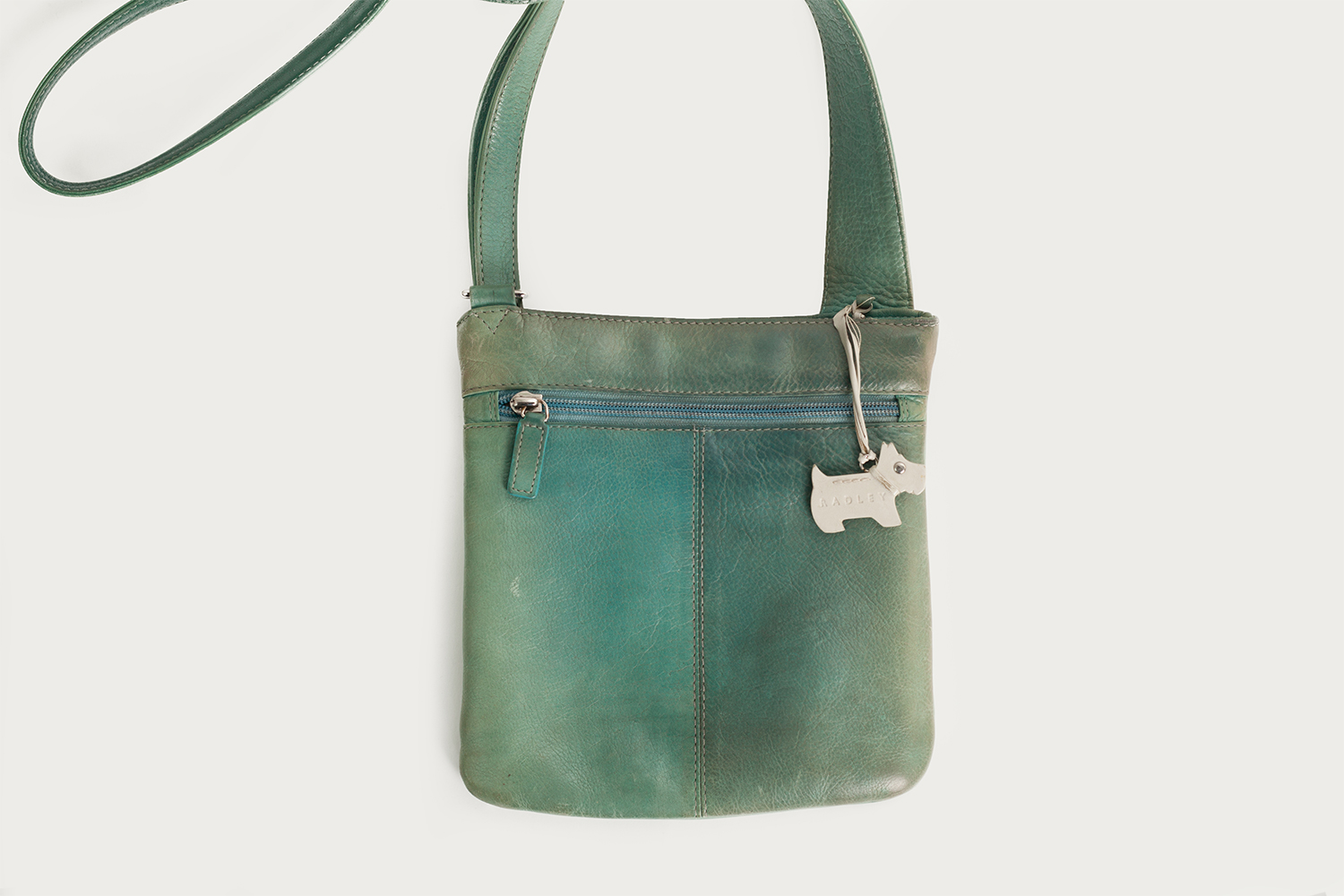Проблема: очень старая кожаная сумка, полинявшая, сильно потертая, с неотмывающейся грязью.