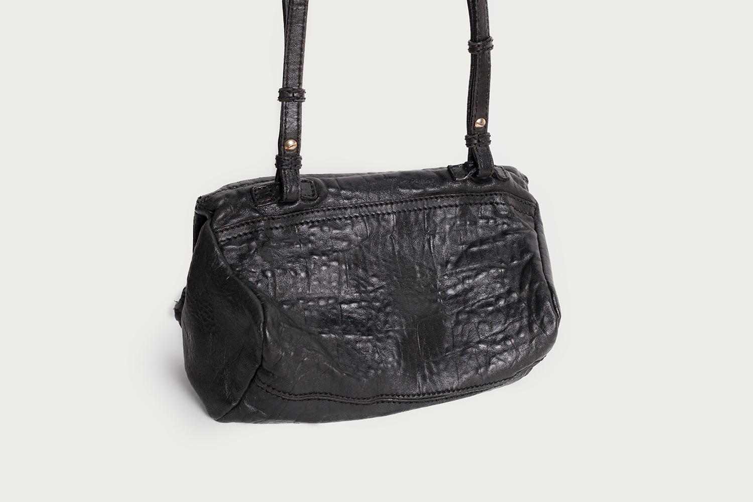 Решение: устранение мелких царапин, восстановление цвета, запаивание кожаных ручек и боковинок сумки.