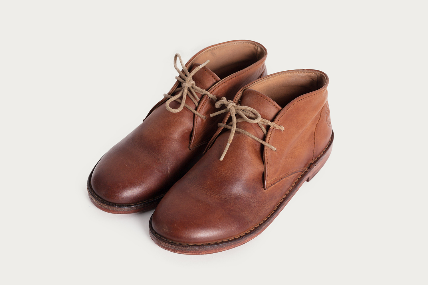 Решение: замена подошв на кожаные, установка нового наборного каблука и вулканизированной профилактики. Верх из нубука был патинирован.